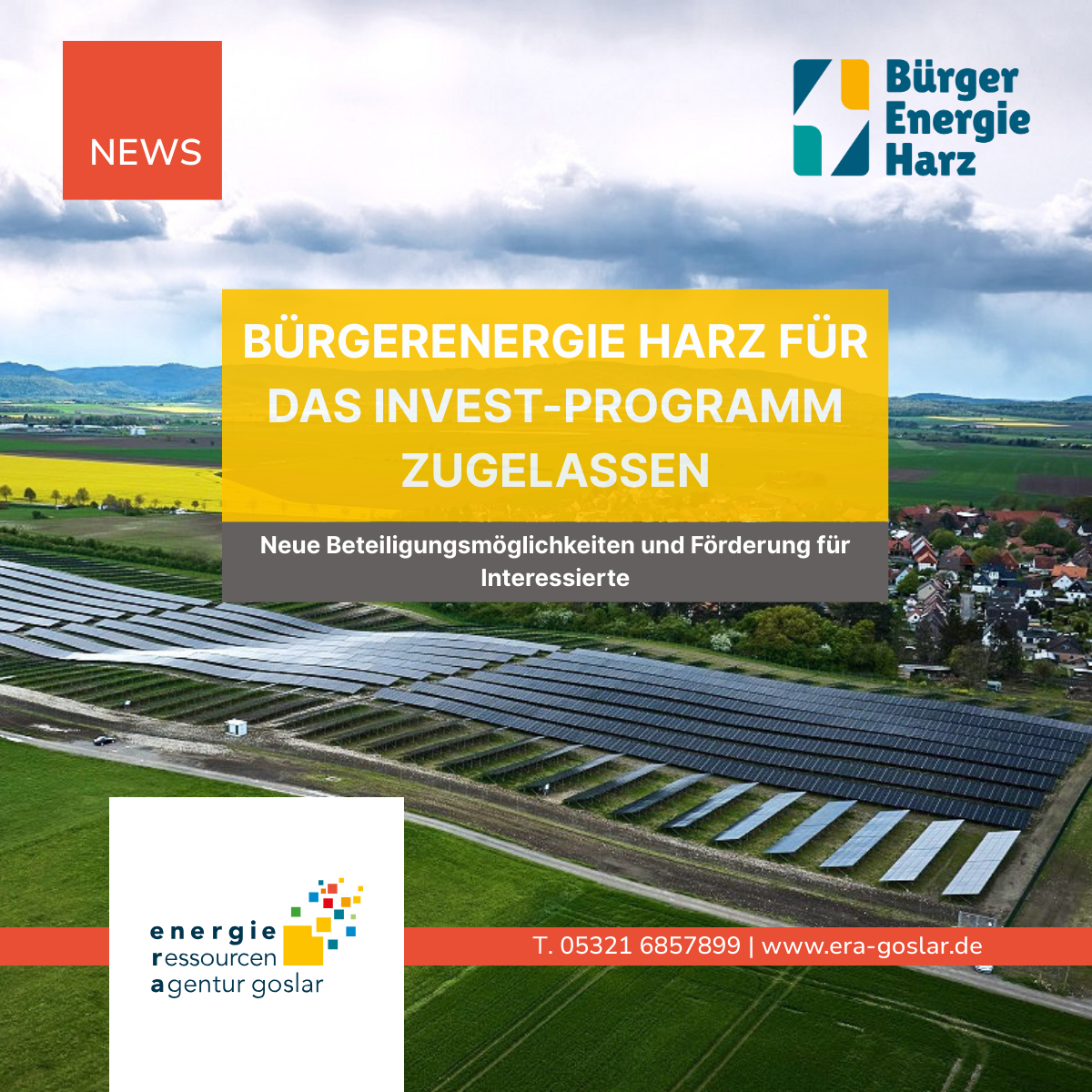 Die Zulassung zu dem INVEST-Programm ist für die Bürgerenergie Harz eine große Chance, weitere Mitglieder und frisches Eigenkapital zur Finanzierung weiterer Energiewendeprojekte in unserer Region zu gewinnen.